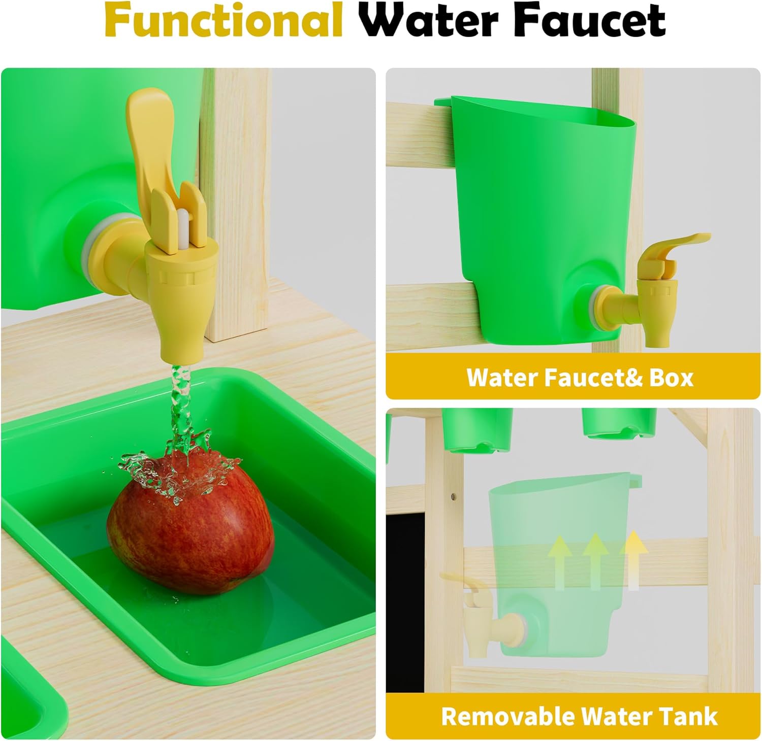 - Water fun in the garden: the integrated water container with functional plastic tap allows real water flow - perfect for mud mixing or for imaginative fruit and vegetable washing. A playful highlight for sunny afternoons outdoors.