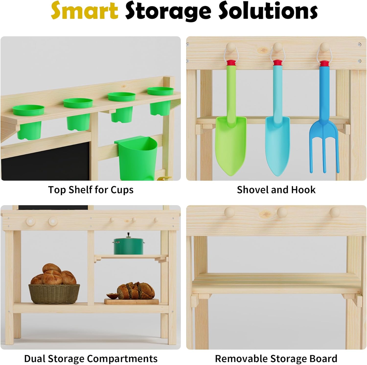 - Sturdy construction made of solid fir wood: made from durable fir wood, this play kitchen impresses with its natural look and stability. The smooth sanded edges ensure safe play in the garden or on the patio.