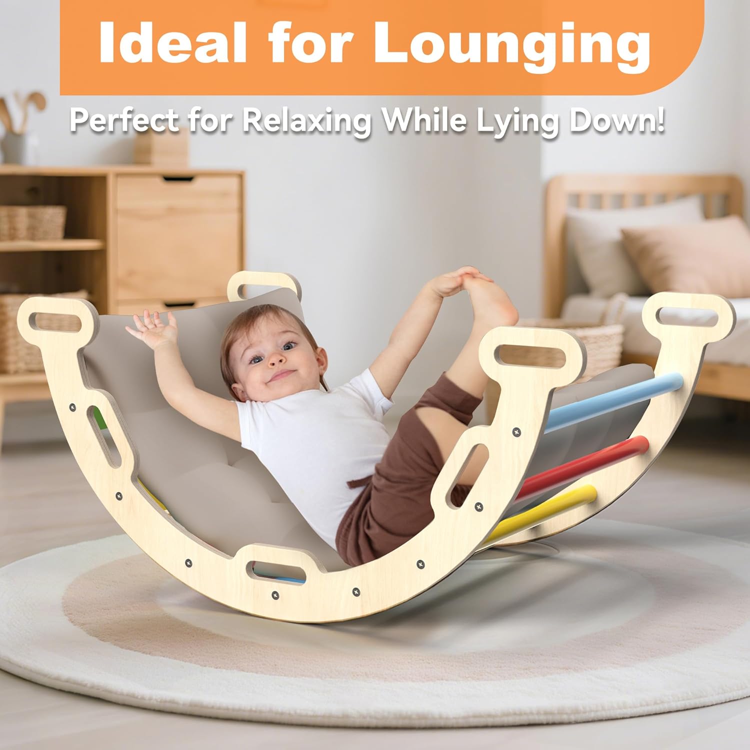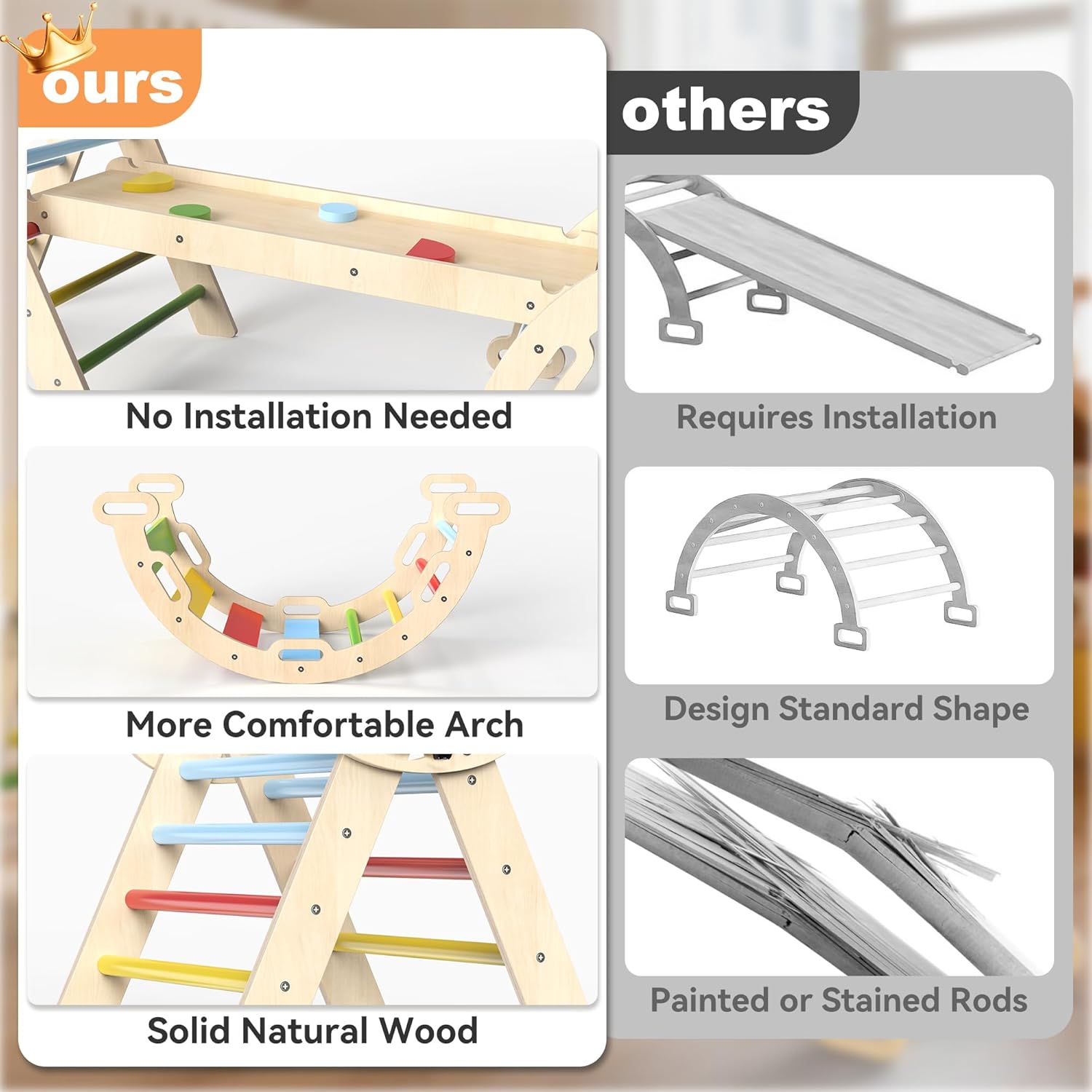 Pikler Triangle Set with Cushion, 7 in 1 Toddler Climbing Toys Indoor, Montessori Foldable Climbing Set, Wooden Climbing Toys for Toddlers Inside with Ramp, Arch and Ladder